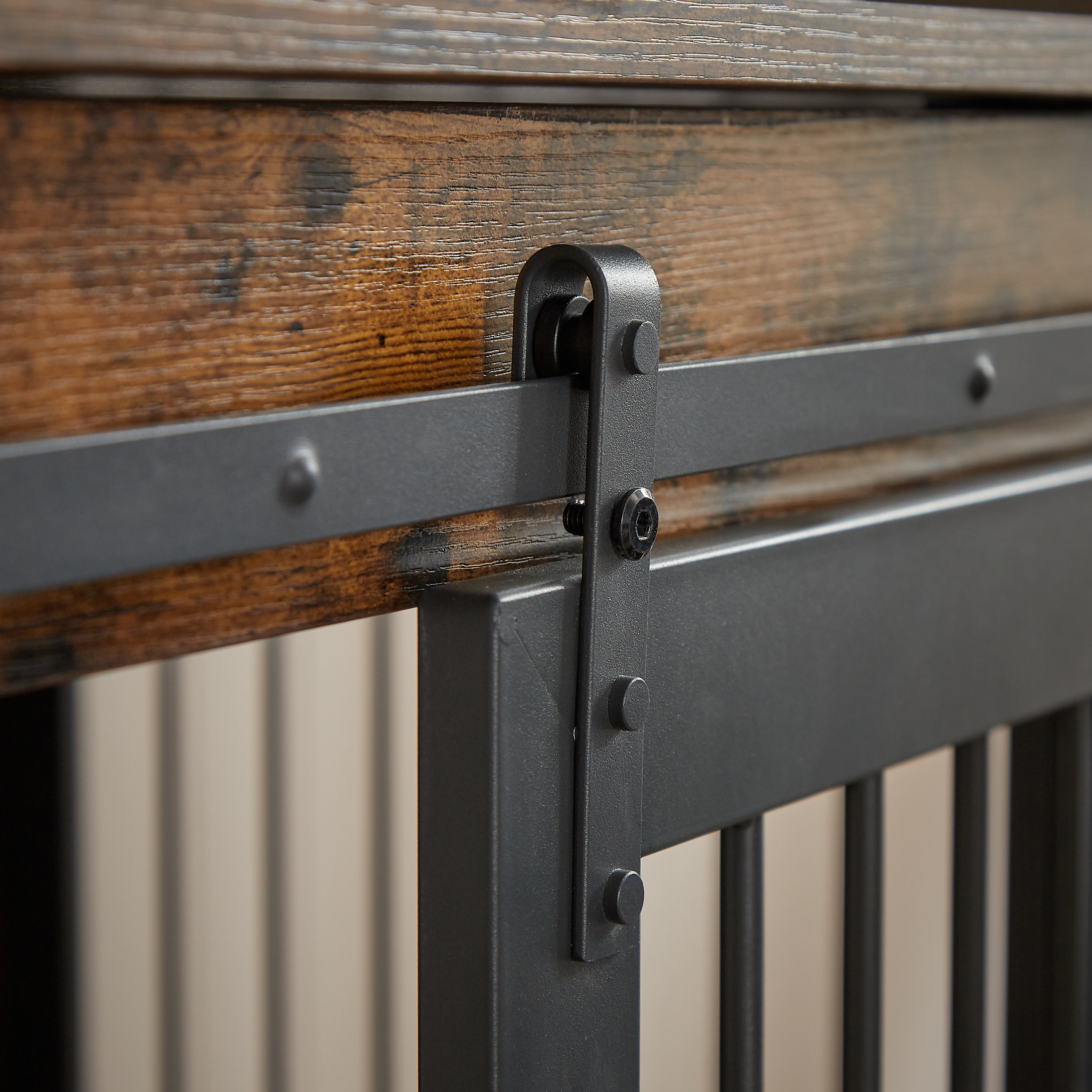 Product Type | Dog Crate | Color | Rustic Brown, Black | Material | Particleboard, Steel | Exterior Measurements | 43.7'' W x 29.9'' D x 42.2'' H (110 x 76 x 107 cm) | Interior Measurements | 40.8'' W x 28.0'' D x 30.1'' H (103.6 x 71 x 76.5 cm) | Max. Static Load Capacity of the Top | 150lb (68 kg) | Max. Static Load Capacity of the Bottom | 150lb (68 kg) | Best suited for medium sized dogs | 40-75 lb | Number of packages | 1 | Package Contents | 1 x Dog Crate, 1 x Assembly Kit, 1 x Instructions |